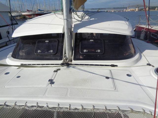 Equipements & Aménagements de pont: 1 Trampoline PVC grand confort(filet neuf 2025), 2 grands coffres étanches de rangement avec verrou,(volume de rangement pour voiles,compartiment technique…