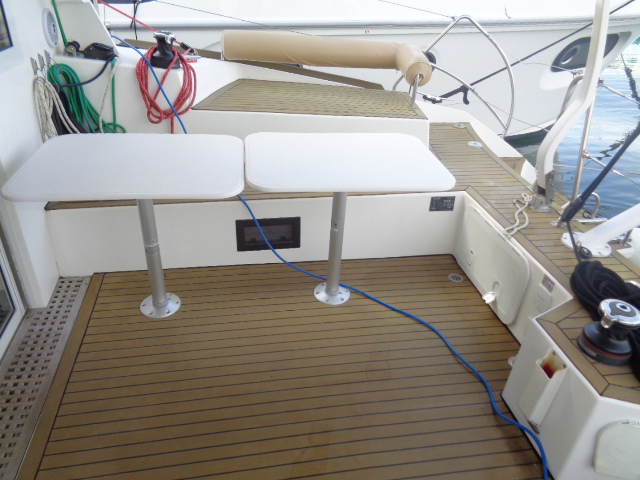 Toutes les manoeuvres sont ramenés au cockpit sur 2 winchs Harken ST 40 à 2 vitesses dont 1 ST40 électrique sur babord placé sur poste de barre.