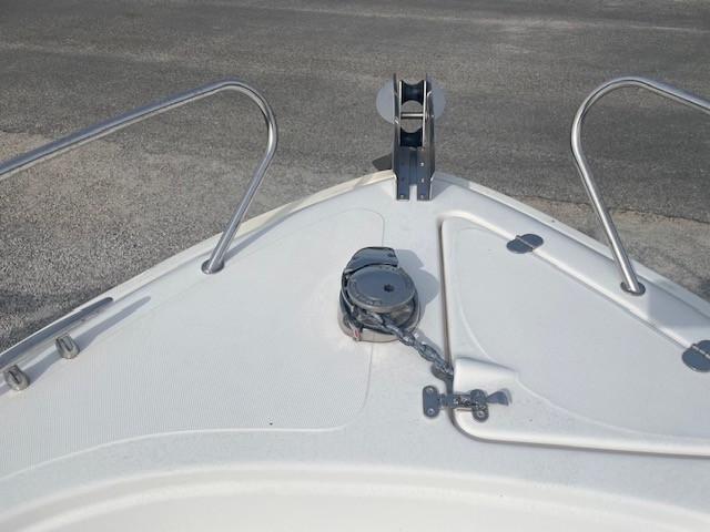 Guindeau électrique avec davier basculant+ mouillage principal(Ancre plate 6 kgs +25m de chaine) + mouillage secondaire – Puits à chaine auto videur.