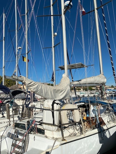 GIB SEA 37 KETCH(GIN FIZZ SLOOP), volumineux, rapide et robuste à été conçu pour la vie à bord et la navigation hauturière apprécié des marins, sur Plans JOUBERT/NIVELT. 2 descentes offrant 2 cabines doubles 7 couchages) grand cockpit central, i lest bon marcheur et raide à la toile.Moteur NANNI 50CV installé neuf en 2014(950h).