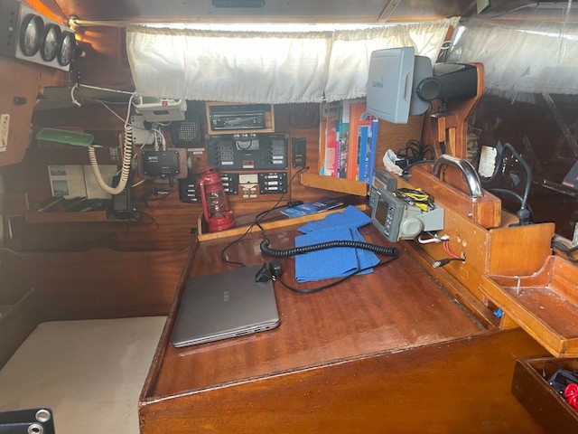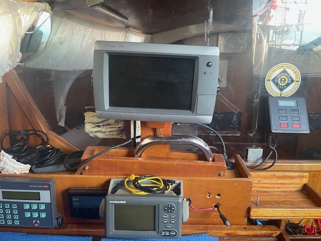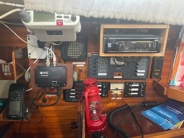 VHF fixe + GPS Cobra + VHF portable + AIS, GPS taceau Garmin, sondeur Autohelm, pilote Autohelm.