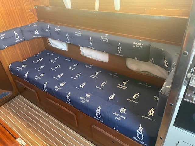 2 cabines doubles pour 9 couchages et homologué pour 10 personnes c’est une seconde main très bien équipé.
