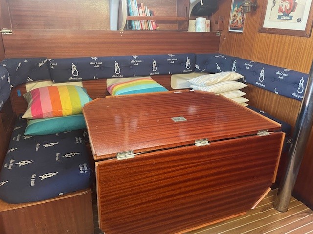 Un carré très vaste pouvant accueillir 5 couchages. La partie WC et la cabine double sont aménagés à l’avant .La cabine arrière est totalement autonome et accessible par une deuxième descente.