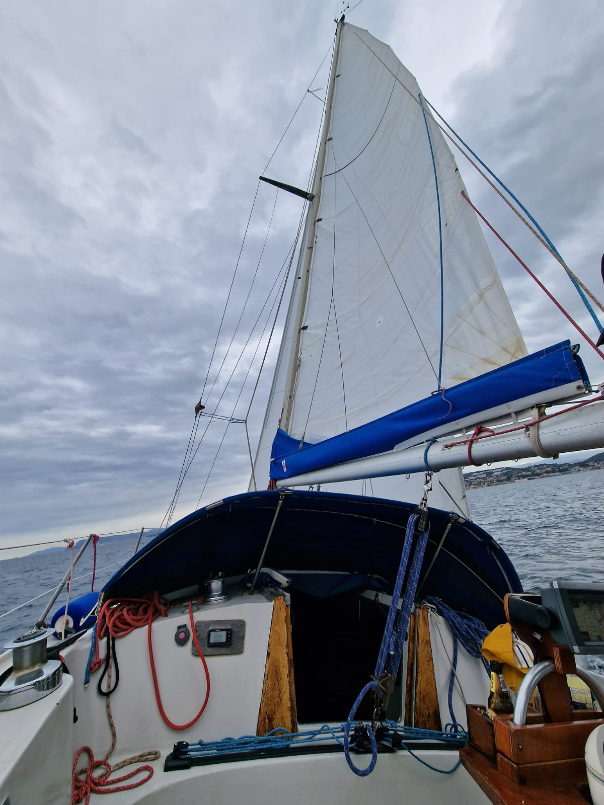 Chariot écoute GV neuf, Etai largable, Winch, renvoi de drisses au cockpit, chaussette de Spi, bout dehors.