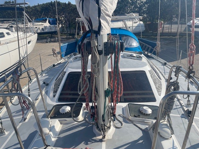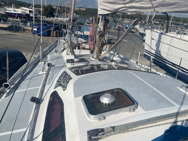 OVNI 41 , dériveur intégral en Aluminium est une solide construction du chantier Français ALUBAT dessiné par P.BRIAND , en version 3 cabines.Ce voilier fiable et sure, très agréable à barrer,avec ses équipements de qualité, son esthétique et ses aménagements , en font le bateau idéal pour faire un Tour du monde(TDM) .Parfaitement entretenu et suivi par ses propriétaires, c’est la référence du voilier de voyage..