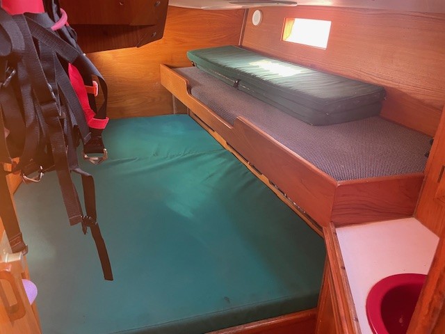 Matelas en mousse,placards penderie et équipets.