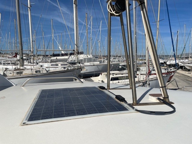 2 batteries (2020) – recharge par panneau solaire souple sur la timonerie